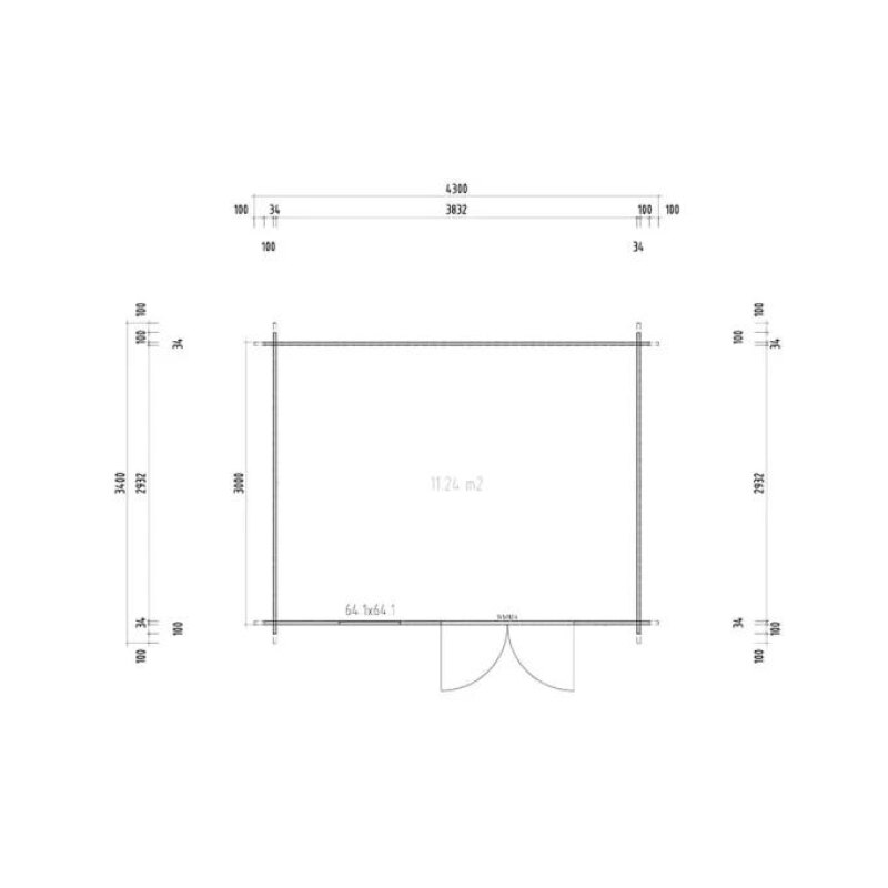 Caractéristiques de l’abri de jardin avec extension à droite :