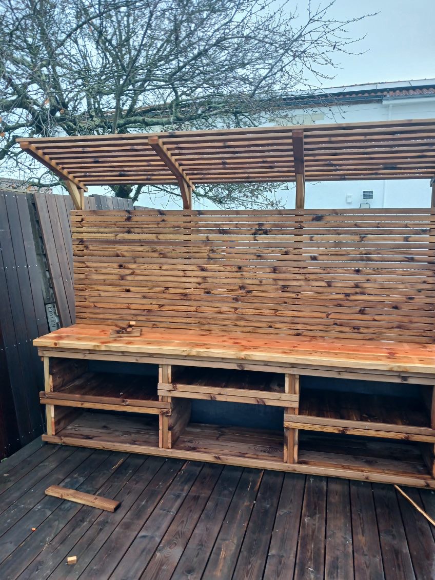 Offrez une nouvelle dimension à votre jardin avec une cuisine extérieure entièrement personnalisée, fabriquée en bois classe VI traité pour une durabilité optimale.