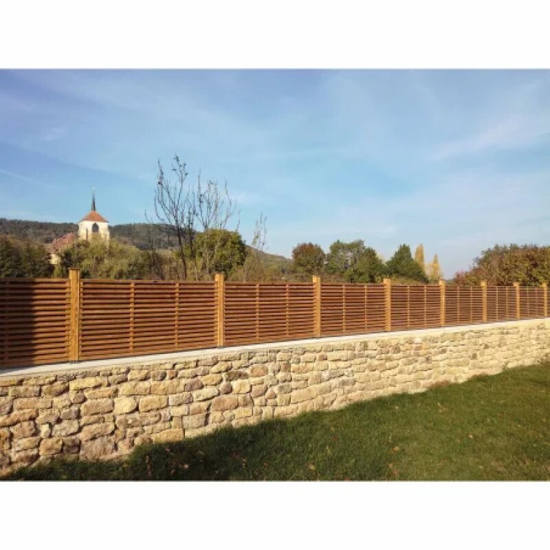 Le panneau Arifi peut idéalement être utilisée en tant que clôture bois sur muret. Cette dernière s’associe parfaitement à l’élégance d’un muret en pierre.