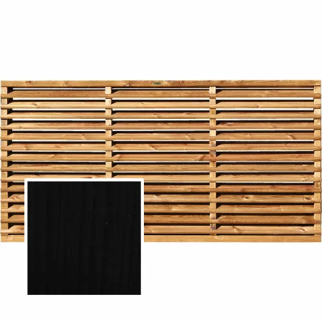 Ce panneau en bois offre une meilleure résistance au vent grâce à ses faibles dimensions et aux lames persiennes qui laissent passer l’air.