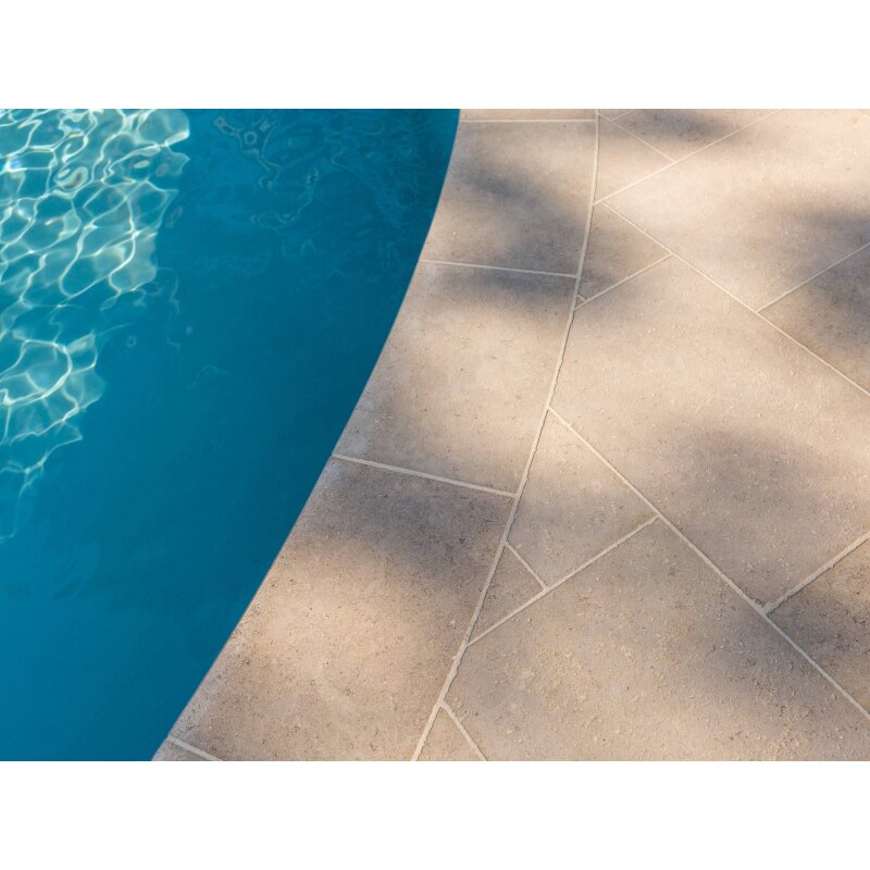 Grâce à sa structure poreuse, le travertin offre une surface naturellement antidérapante, idéale pour les terrasses, les abords de piscine ou encore les allées de jardin. Il résiste très bien aux variations de température, ce qui lui permet de conserver son apparence au fil des saisons, même dans les environnements les plus exigeants.